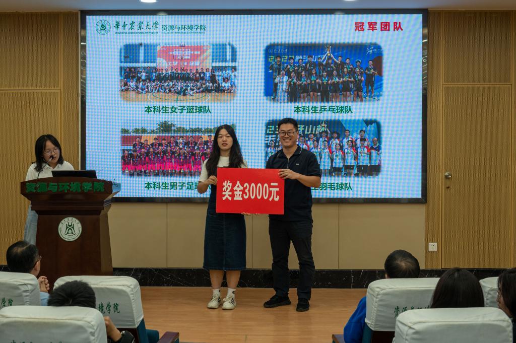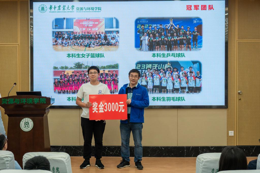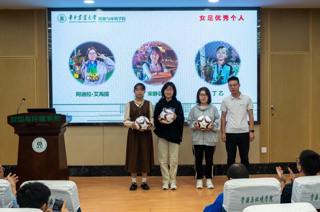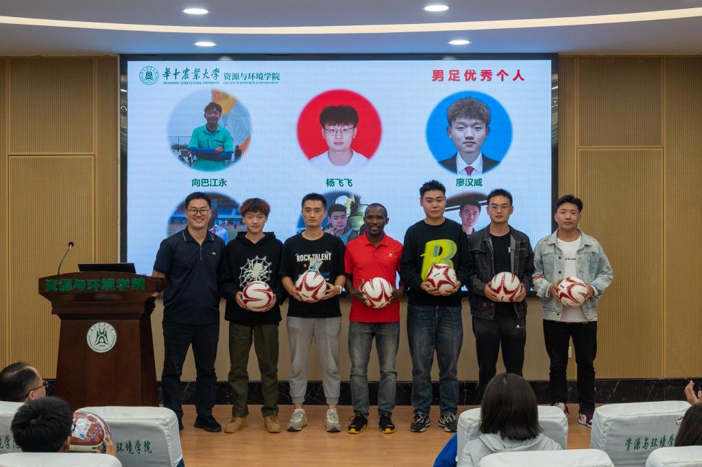 宋艳暾、胡志宏老师为研究生男足、啦啦操队、游泳队颁奖