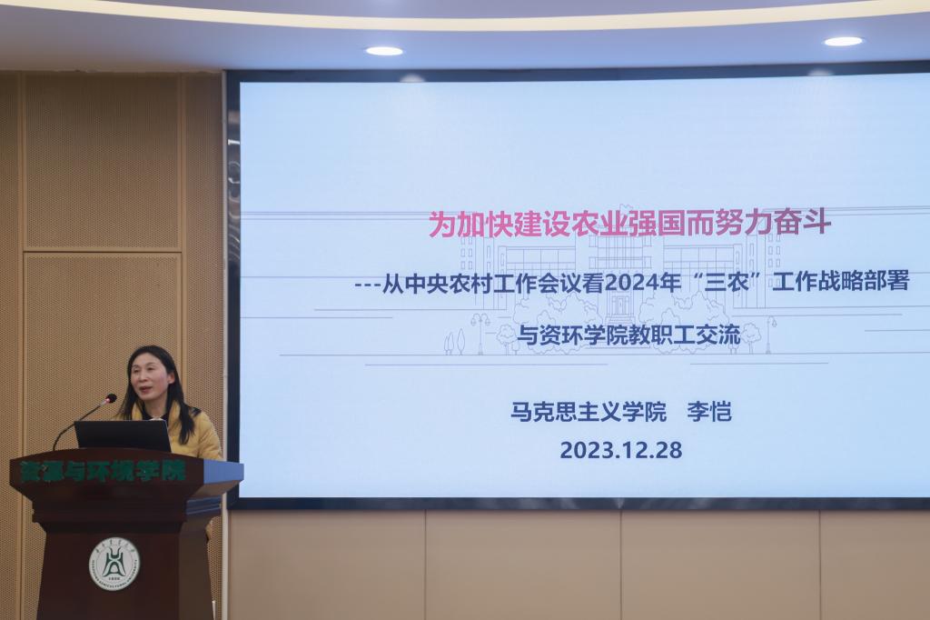 12月28日下午,学院党委理论学习中心组(扩大)专题学习中央农村工作会议精神,特邀马克思主义学院李恺教授作专题报告,全院教师参加集体学习。会议由学院党委书记吕守华主持。
