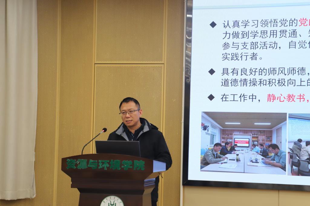 学院党委书记吕守华从聚焦理论学习、聚焦主责主业、聚焦铸魂育人、聚焦担当作为、聚焦发展环境等五个方面进行个人述职,他指出,在未来工作中要进一步抓好创新理论武装,做好学用结合文章;进一步落实发展规划,推动学院事业高质量发展。学院院长谭文峰从日常工作、学科建设、国际交流与合作、党风廉政建设情况等方面进行总结,他谈到,学院将进一步梳理学科发展思路,以耕地质量提升和农业农村环境改善为核心,立足长江经济带生态环境与绿色发展需求,从“土壤-作物-环境”多个维度开展立体化公关,服务“藏粮于地、藏粮于技”和国家生态文明发展战略。学院党委副书记熊海林,副院长石磊、王昭、史志华、蔡鹏依次进行个人述职述廉。与会教职工对学院领导班子和班子成员进行了现场民主测评。