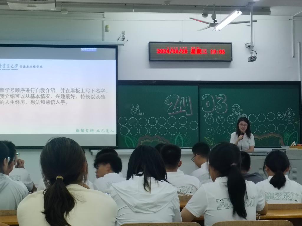 环工类2403班的班会上,副院长王昭提醒同学们要做好规划,进入大学意味着开始独立学习,要更加自律,注重德智体美劳全面发展。