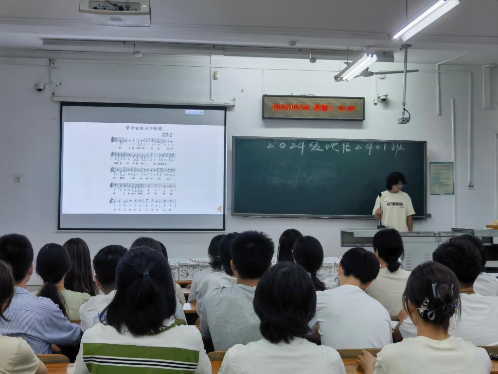 在环工类2401班的班会上,副院长蔡鹏和同学们分享了自己作为土生土长华农人的求学经历,他希望同学们在良好的校园氛围中找到个人目标、全面发展,为将来的自己交上一份满意的答卷。