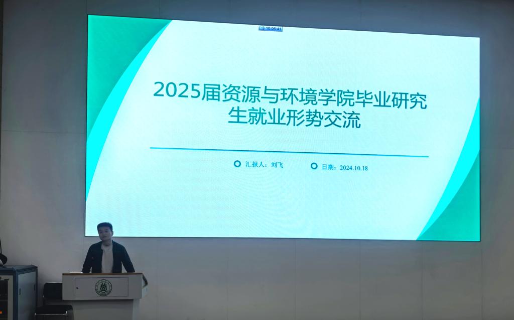1018日上午,学院2025届毕业研究生就业动员大会暨简历撰写培训会在三教S1报告厅召开,学院党委副书记熊海林、学校研究生就业指导中心主任刘飞出席大会,学院2025届毕业研究生参加大会。研究生辅导员胡志宏主持大会。