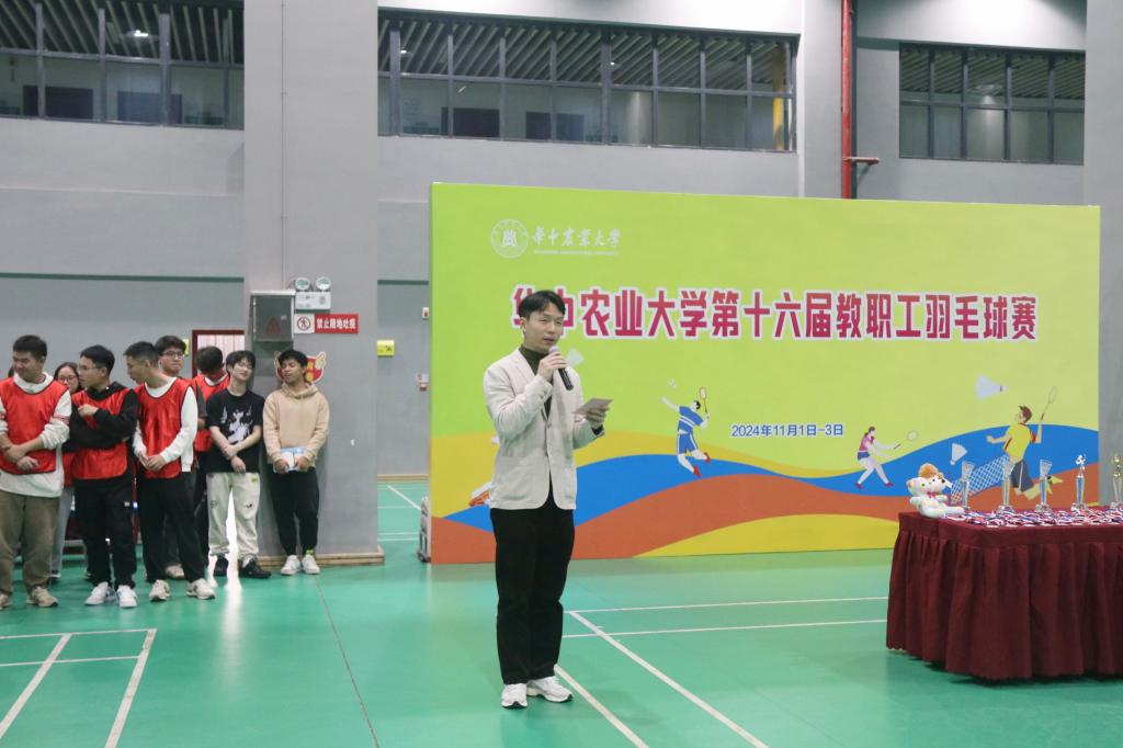 11月1日晚,第十六届华中农业大学教职工羽毛球赛于东体育馆羽毛球馆开幕,开幕式由我院辅导员甄诚主持。
