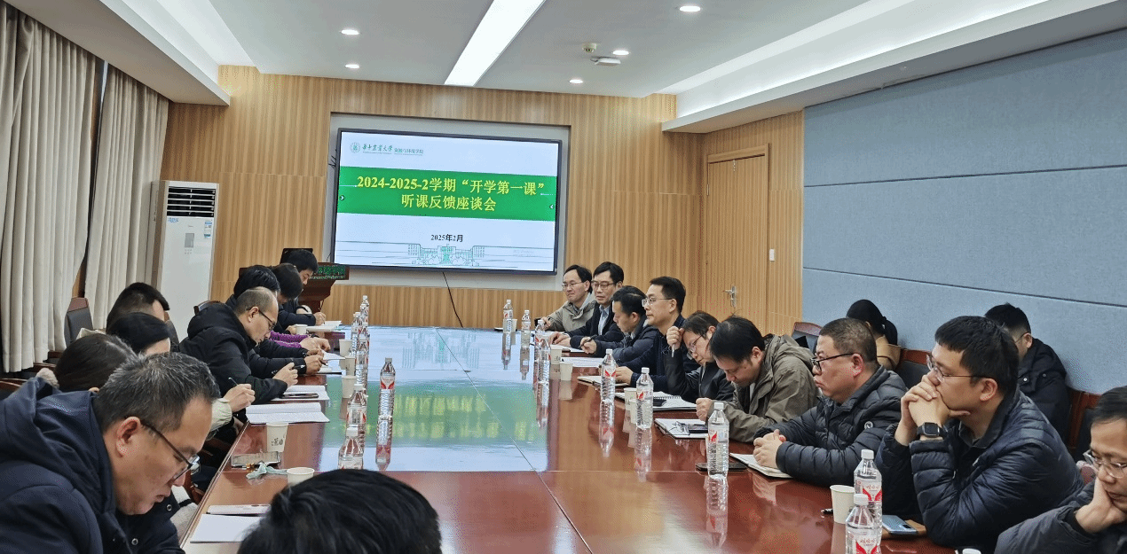 2月17日下午,我院在主楼315会议室召开了2025年春季学期“开学第一课”听课反馈座谈会,此次听课涉及学院11位老师讲授的9个本科生课堂和2个研究生课堂。校党委常委、副校长郭刚奇、部分职能部门领导干部、本科教学巡视员、院领导班子、各系专业负责人、教学团队负责人、青年教师及授课老师等28人参加座谈会,会议由我院党委副书记熊海林主持。