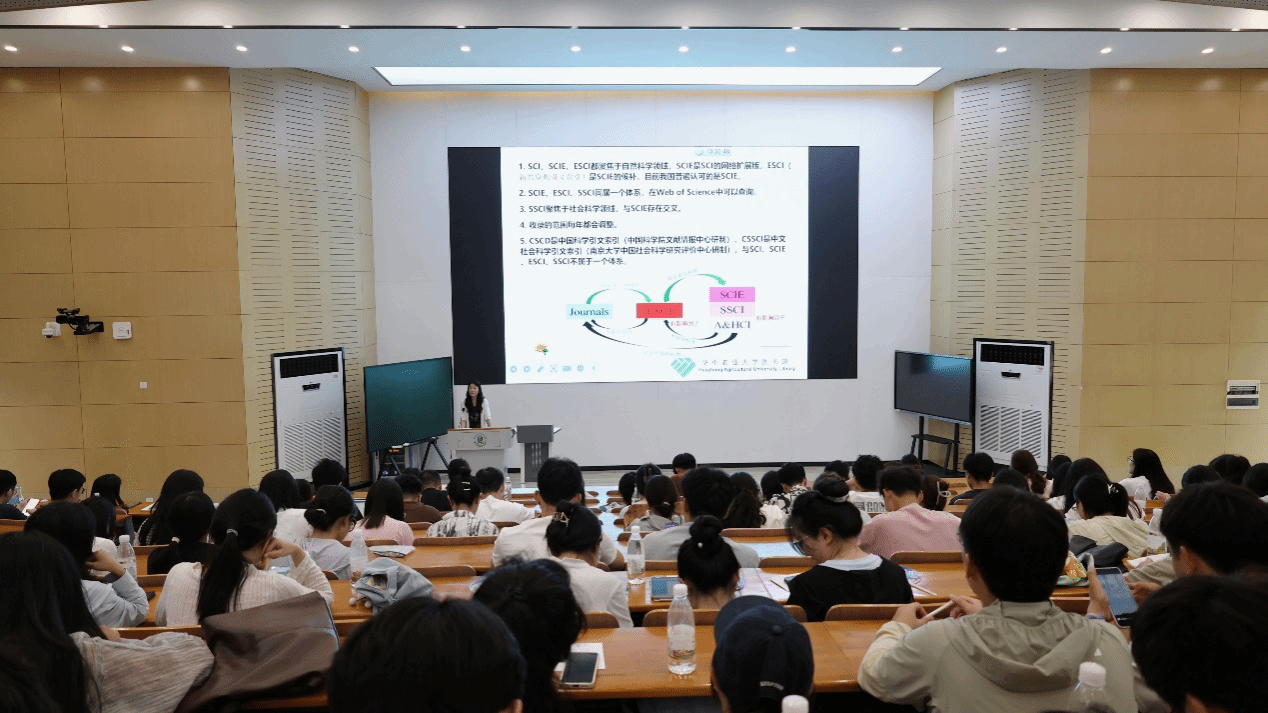 图书馆信息服务部李翠霞老师围绕图书馆信息资源与服务相关内容进行介绍,助力研究生新生高效进行文献检索、分析与管理,提升学术研究效率。她详细介绍了自然科学领域的权威检索工具,包括SCIE《科学引文索引》、EI《工程索引》、CPCI-S(ISTP)《科技会议录索引》等,并演示了如何利用文献数据库赋能学术分析与研究。