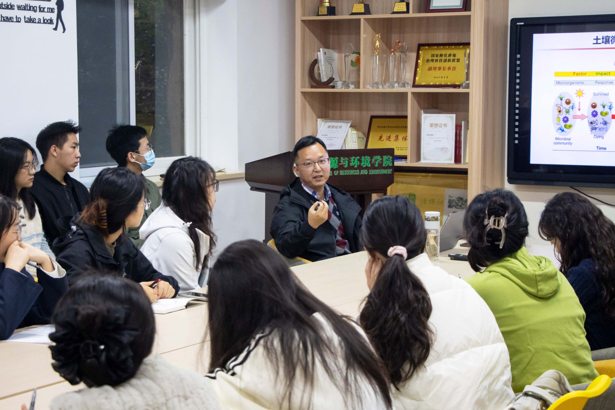 “我们对土壤了解得越多,就越发现未知的领域更广。”蔡鹏表示,作为新时代大学生,不仅要有能力解决实际问题,更要勇于提出新问题,这需要大家在科研中勇于创新、不断突破。他鼓励同学们摒弃传统套路,积极运用数据驱动的新方法,推动科研工作与时俱进。