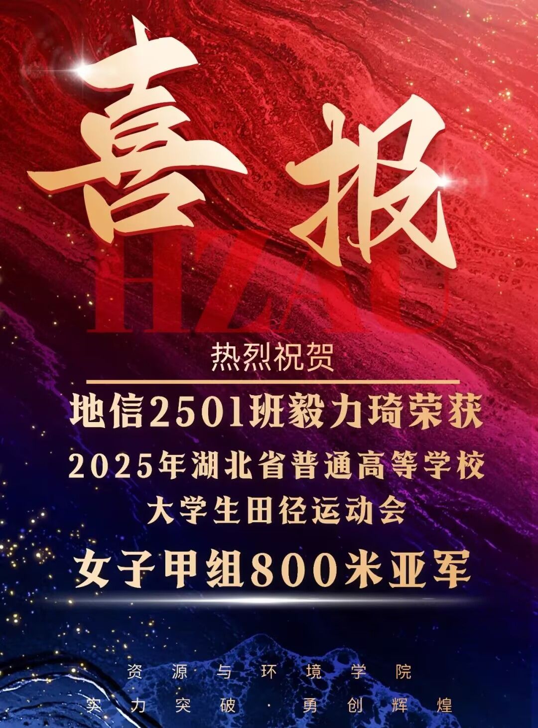 刚刚!我院地信2501班毅力琦斩获湖北省大学生田径赛女子甲组800米亚军!