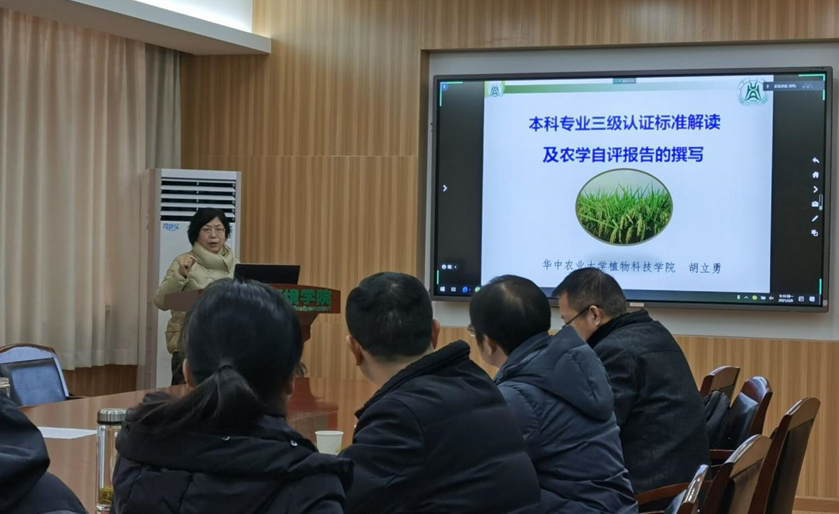 会议首先邀请植科院农学系系主任胡立勇教授对本科专业三级认证标准进行解读。胡教授的报告分为四个部分:“专业认证程序了解”、“认证标准及其相互关系”、“自评报告的写作组织”和“自评报告撰写”。她详细介绍了本科专业三级认证的认证程序、认证标准、7+1核心指标内涵关系,并分享了农学专业自评报告的撰写,专业三级认证组织的经验与体会,提出专业认证要“以学生为中心,以产出为导向,持续质量改进”的理念。资环学院目前共有6个普通本科专业,其中农业资源与环境为国家一流本科专业建设点,环境科学、环境工程为省级一流本科专业建设点。三个专业准备在2021年先后启动本科专业三级认证工作。听了胡老师的报告,与会老师收获满满,并就本科专业三级认证工作与胡老师进行了热烈的交流和讨论。