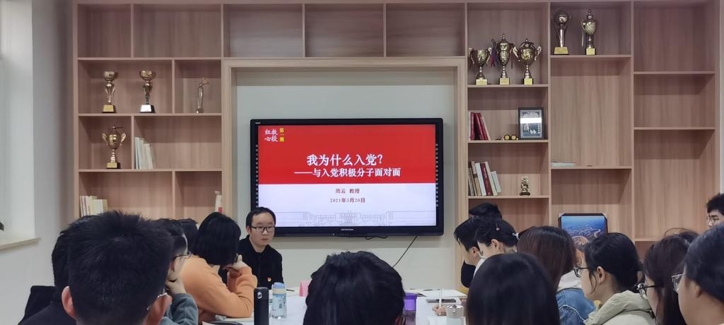 3月20日上午,由资源与环境学院大学生党总支主办的“教授红心工作室”第一期在主楼240举行,周云教授应邀与本科生、研究生入党积极分子40余人围绕初心使命、入党动机等话题展开讨论交流,帮助大家坚定理想信仰,明确努力方向,争取早日入党。辅导员胡志宏主持交流会。